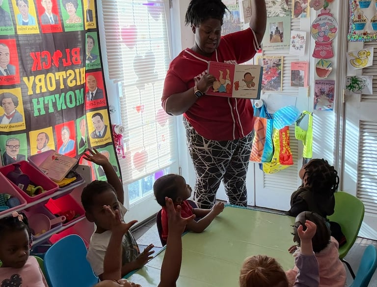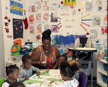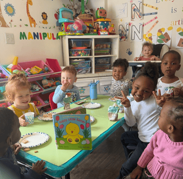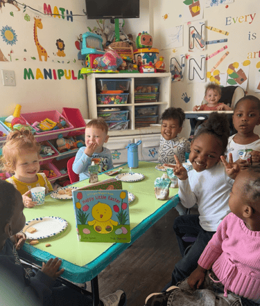 Daily reading circles and language rich environments support early literacy and communication skills in a fun, interactive way.